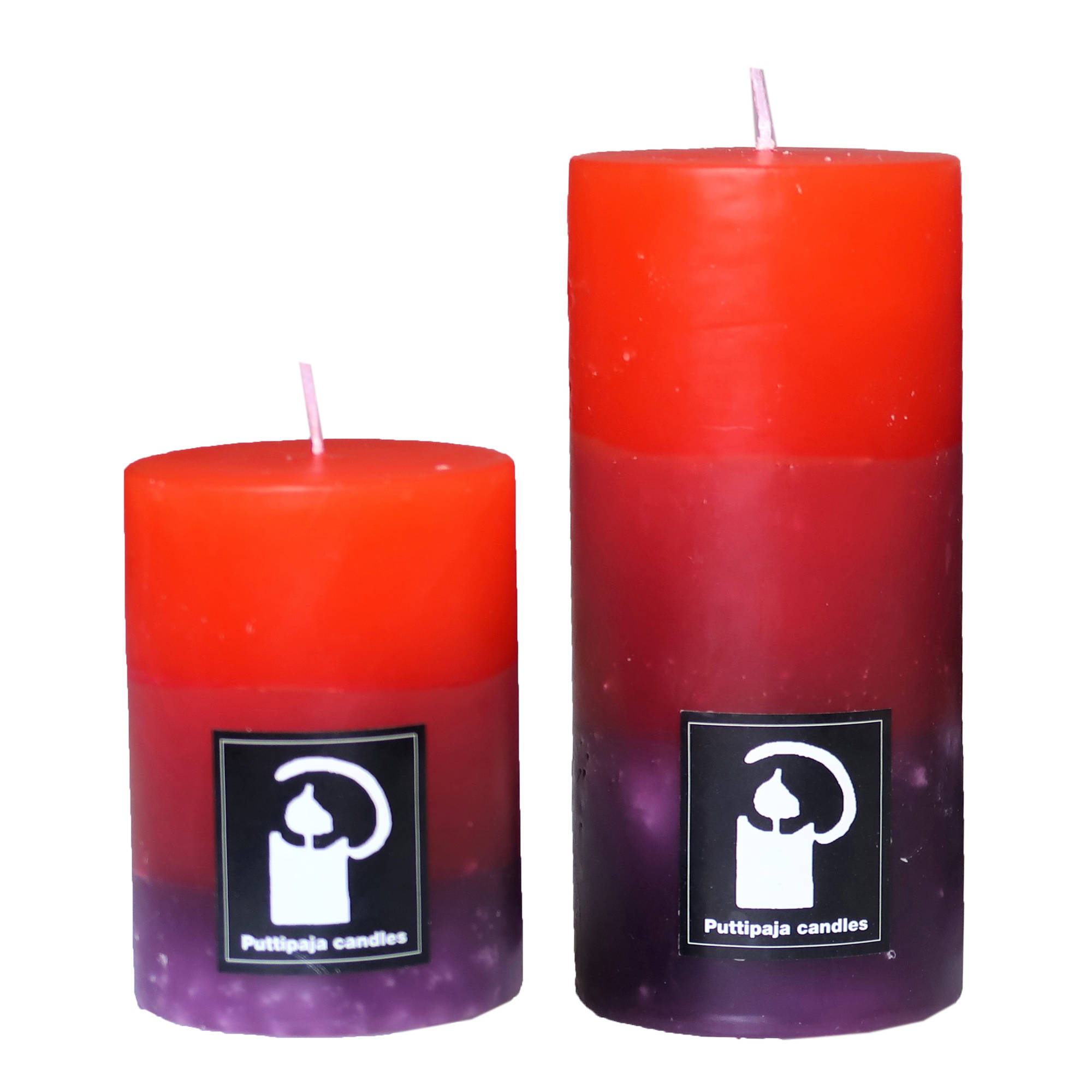 Puttipajan raitakynttilöissä leikitellään erilaisilla herkullisilla väriyhdistelmillä. Läpivärjätty raitakynttilä säilyttää kauniin värinsä myös kynttilän palaessa. Puttipajan pöytäkynttilän pintakuviointi on vivahteikkaan eläväinen, jota kynttilän liekin valo korostaa kauniisti.
