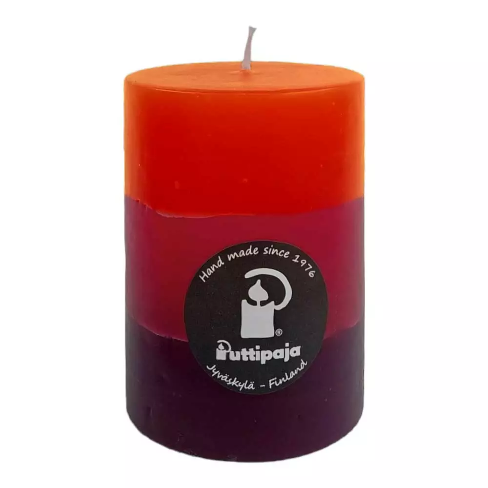 Puttipajan raitakynttilöissä leikitellään erilaisilla herkullisilla väriyhdistelmillä. Läpivärjätty raitakynttilä säilyttää kauniin värinsä myös kynttilän palaessa. Puttipajan pöytäkynttilän pintakuviointi on vivahteikkaan eläväinen, jota kynttilän liekin valo korostaa kauniisti.