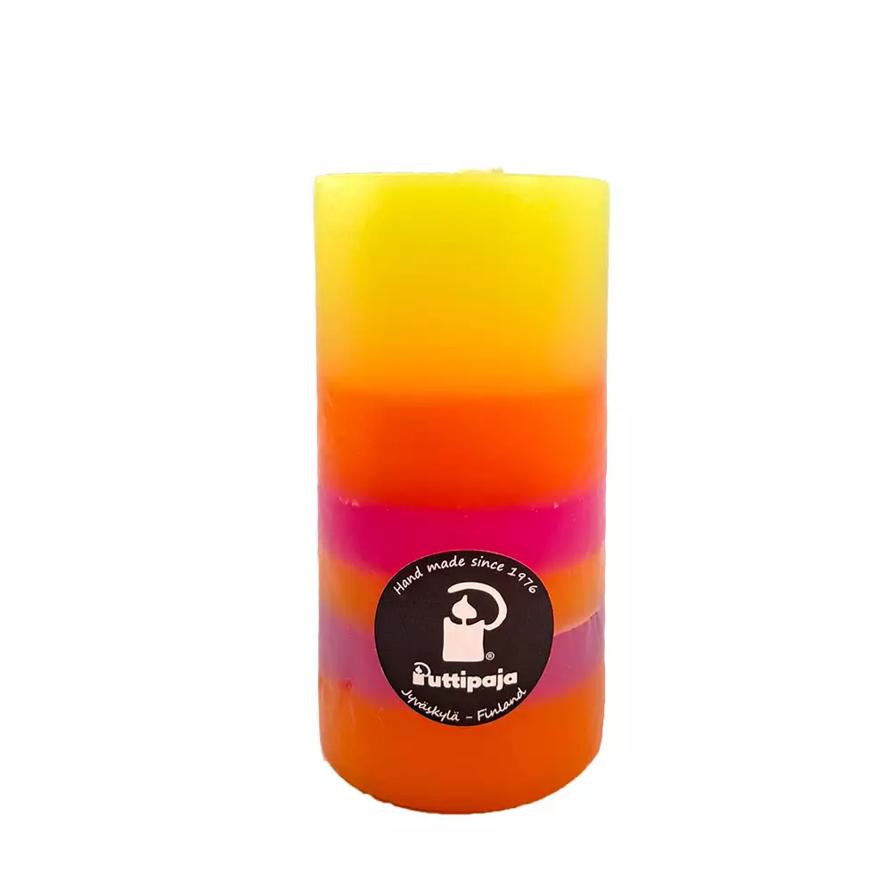 Puttipajan raitakynttilöissä leikitellään erilaisilla herkullisilla väriyhdistelmillä. Läpivärjätty raitakynttilä säilyttää kauniin värinsä myös kynttilän palaessa. Puttipajan pöytäkynttilän pintakuviointi on vivahteikkaan eläväinen, jota kynttilän liekin valo korostaa kauniisti.