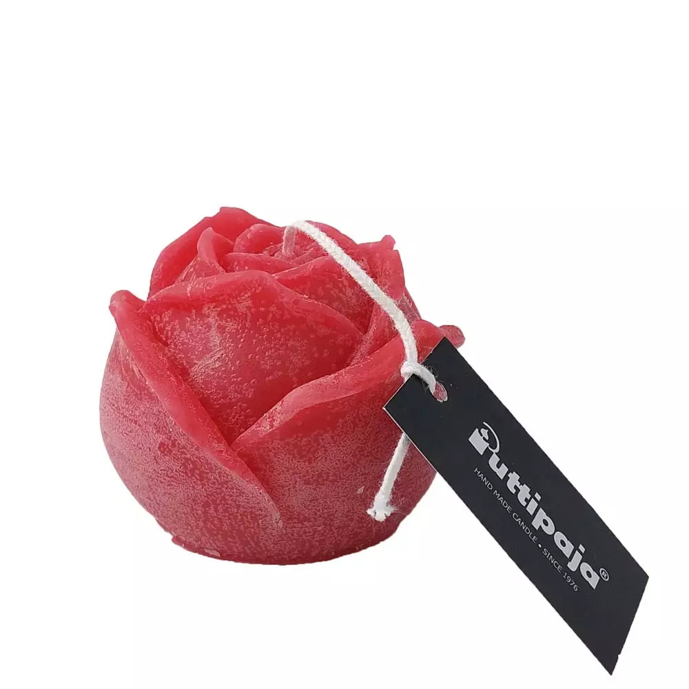 Herttainen punainen ruusukynttilä, jonka halkasija on 7 cm