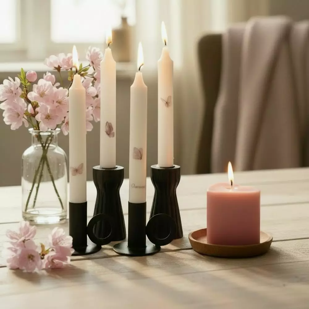 Vaaleanpunaisen jalallisen pallokynttilän paloaika on 12 tuntia. Pallokynttilät myydään kahden kynttilän paketissa.