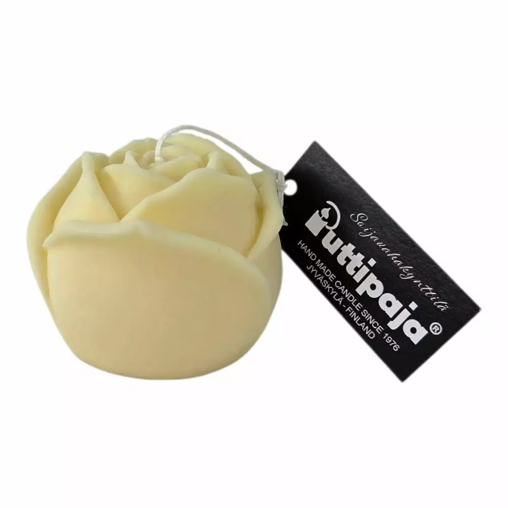 Puttipajan vaaleankeltainen ruusukynttilä on hurmaava yhdistelmä käsityötä, ekologisuutta ja estetiikkaa.
