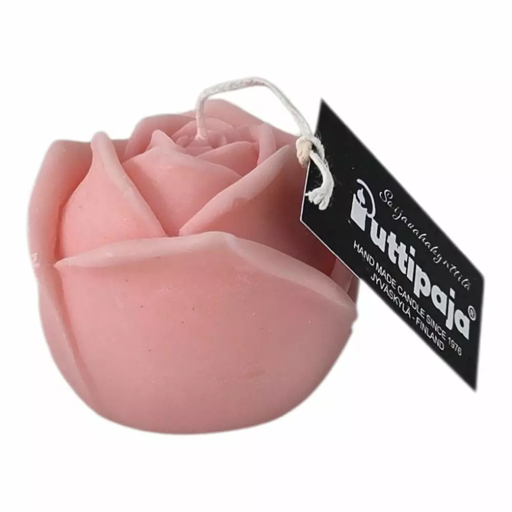 Puttipajan vaaleanpunainen ruusukynttilä on hurmaava yhdistelmä käsityötä, ekologisuutta ja estetiikkaa.