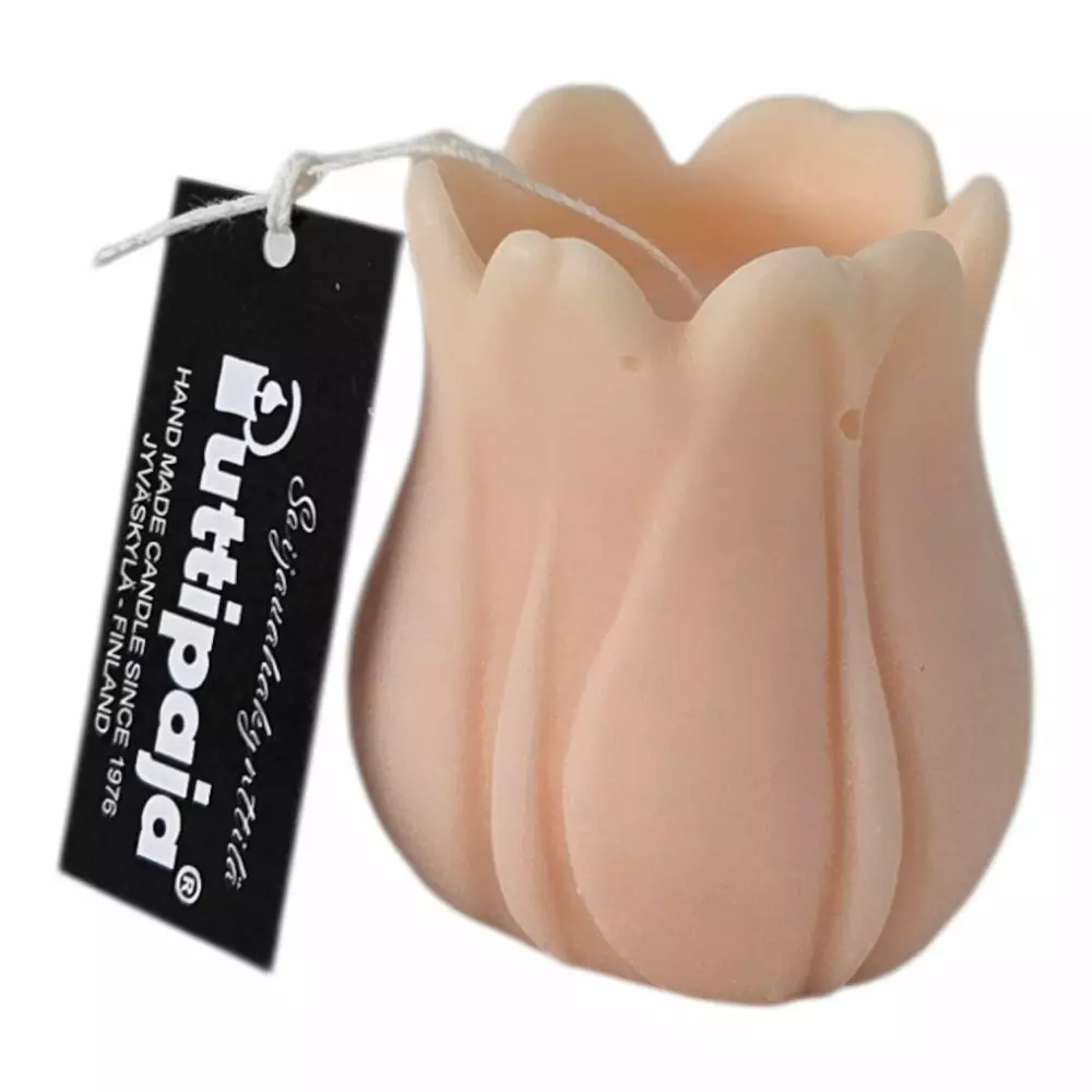 Käsintehty tulppaanikynttilä ekologisesta soijavahasta. Vaaleankeltainen väri tuo pehmeyttä sisustukseen ja sopii täydellisesti lahjaksi kevään juhliin. Tilaa Puttipajalta!...