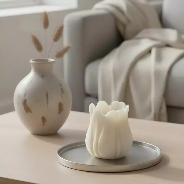 Käsintehty tulppaanikynttilä ekologisesta soijavahasta. Vaaleanpunainen väri tuo pehmeyttä sisustukseen ja sopii täydellisesti lahjaksi kevään juhliin. Tilaa Puttipajalta!...