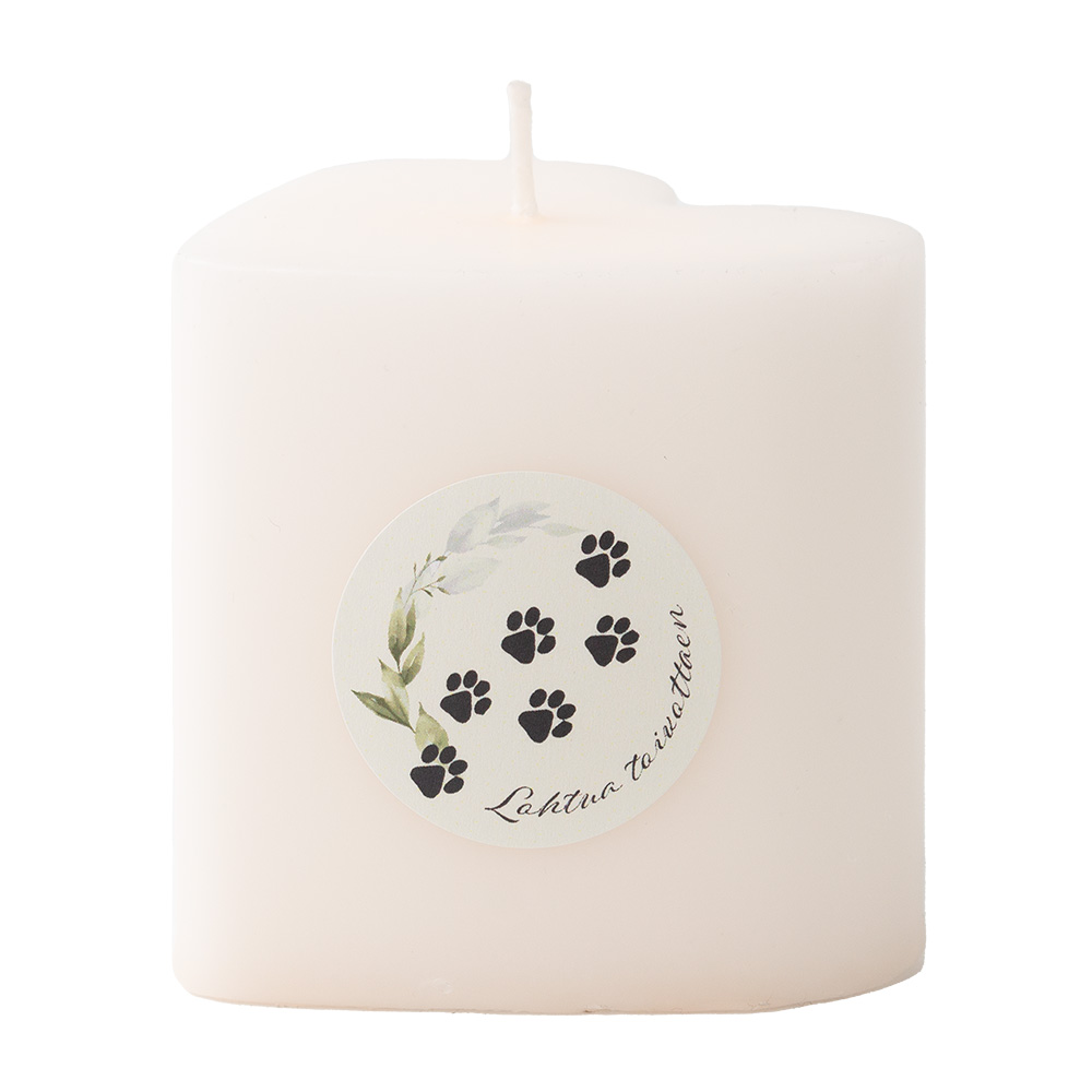 Muista ja huomio edesmenneen lemmikin omistajia somalla ja kunnioittavalla sydänkynttilällä! Tarrassa lukee teksti: "Surussa myötäeläen".