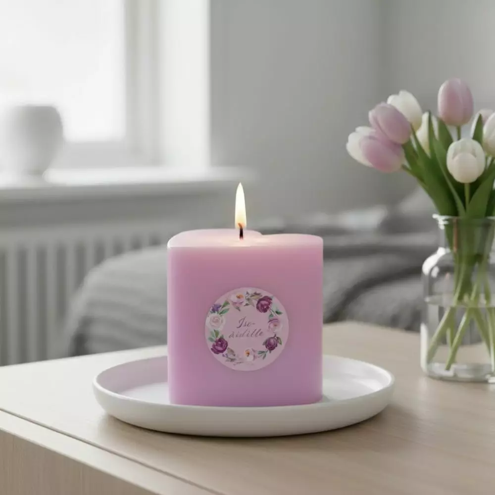 Vaaleanpunaisen jalallisen pallokynttilän paloaika on 12 tuntia. Pallokynttilät myydään kahden kynttilän paketissa.