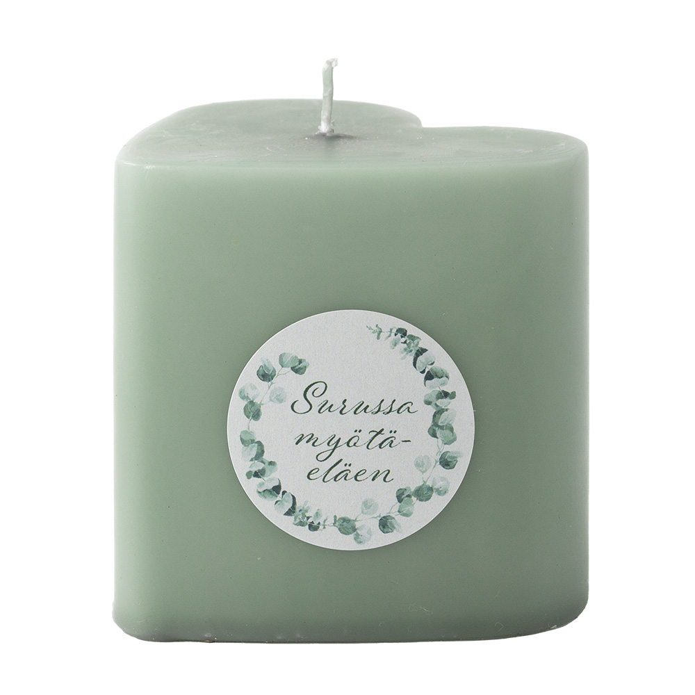 Muista ja huomio edesmenneen lemmikin omistajia somalla ja kunnioittavalla sydänkynttilällä! Tarrassa lukee teksti: "Lohtua toivottaen".