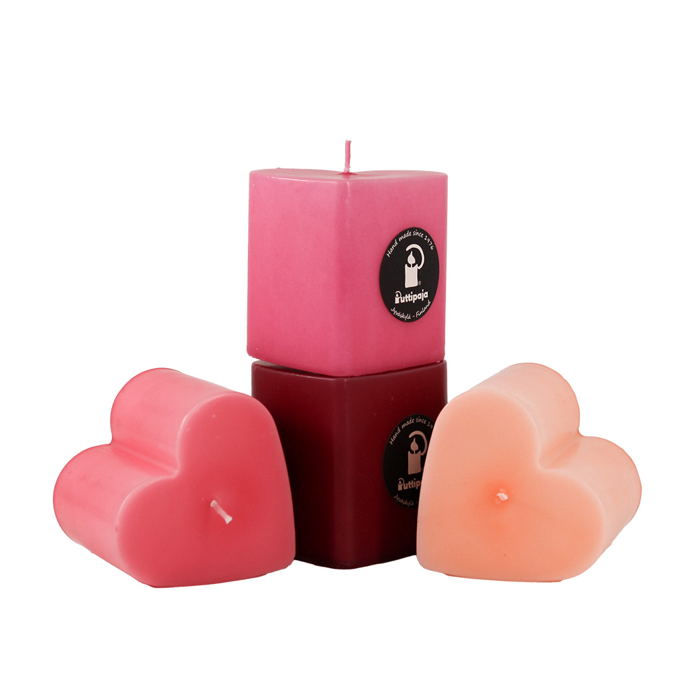 Paketti Puttipajan herttaisin pintavärjättyjä sydänkynttilöitä.