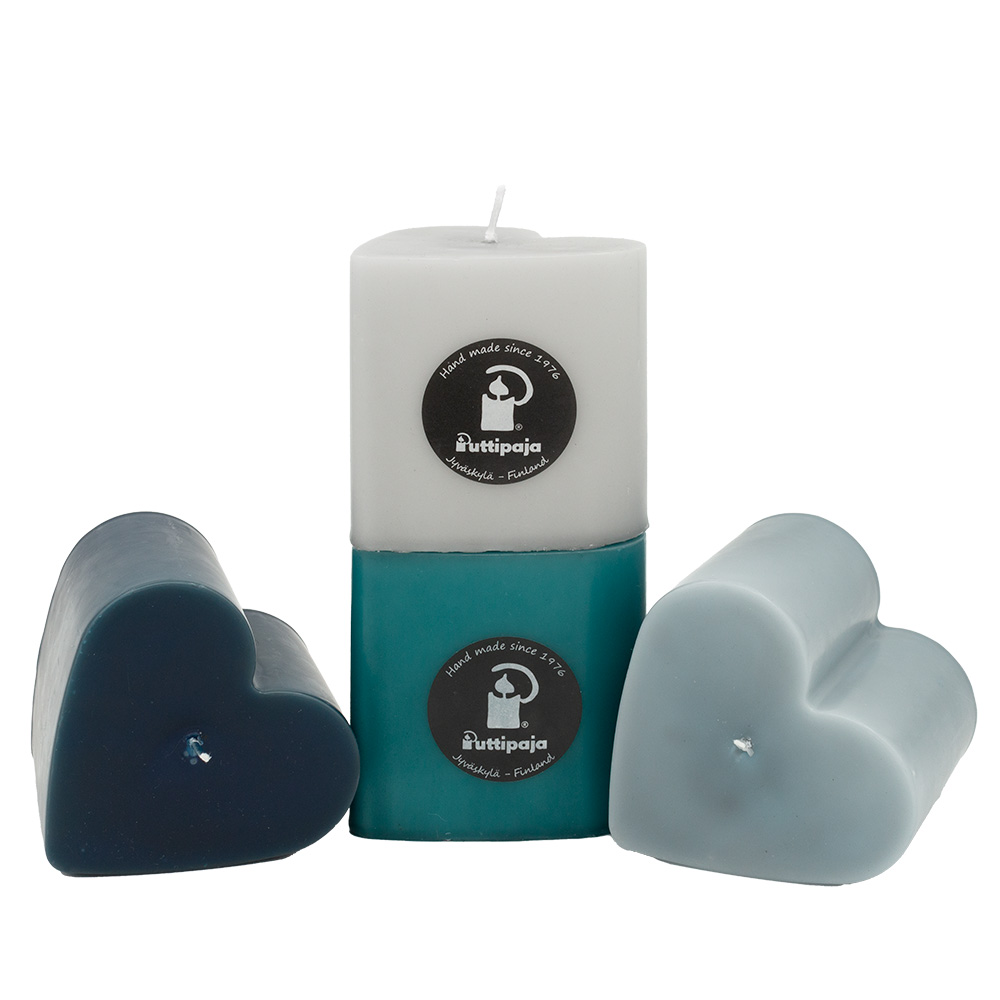 Sydänkynttilä, yönsininen.Yönsininen pintavärjätty sydänkynttilä 8 cm. Kynttilän paloaika 40 tuntia.Tuotekoodi: 1410820 (0)8,30 €tai 3 kpl hintaan 7,89 € / kpl Heti omasta varastosta (Tehtaanmyymälä)