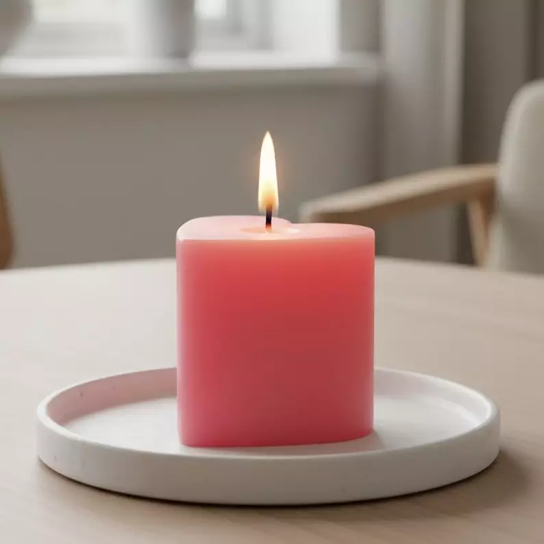 Puttipajan läpivärjätty käsinvalettu viiruputti. Raitakynttilän väreinä vaaleanpunaisen eri sävyt.
