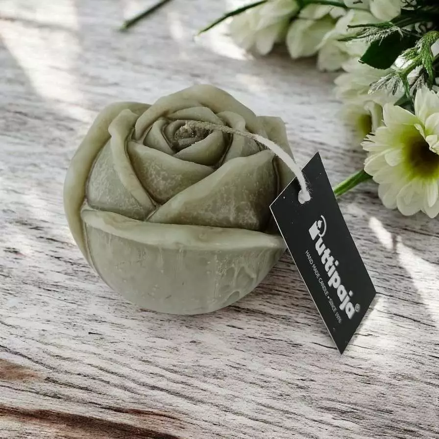 Tervantuoksuinen kruunukynttilä, jossa jokaisessa uniikki pintakuviointi. Tervakruunut myydään 10 kpl paketissa.