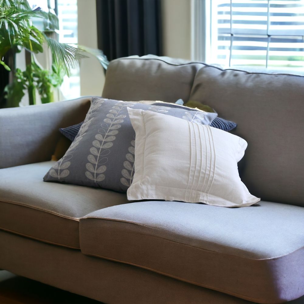 Tässä pellavaisessa tyynynpäällisessä on ajattoman tyylikäs design. Laakareunat ja pliseeraukset tuovat huvilatunnelmaa.