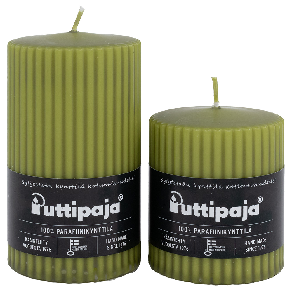 Oliivinvihreä pintavärjätty vekkikynttilä 8 cm.