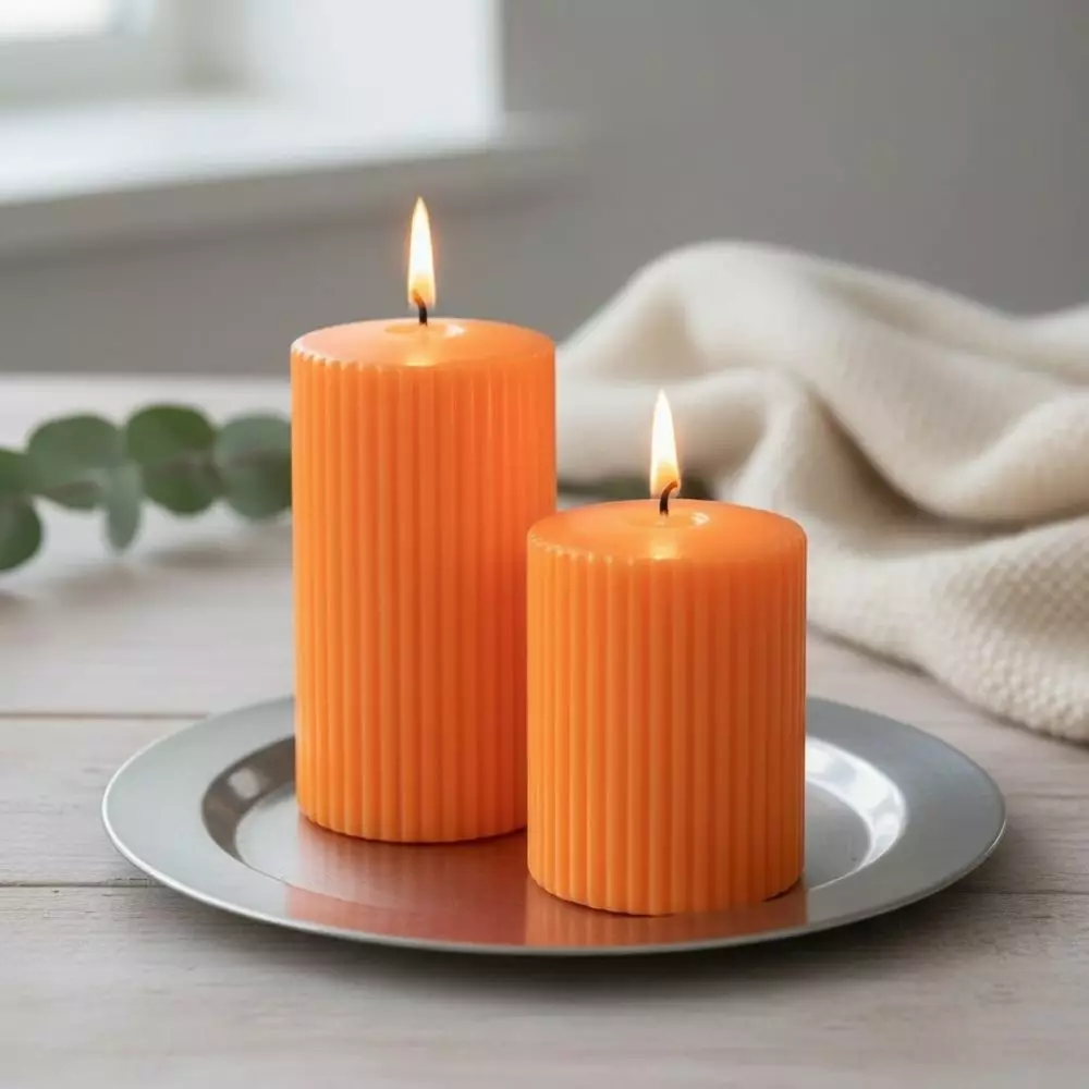 Pintavärjätty vekkikynttilä Väri: Oranssi Koostumus: 100 % parafiinia Kynttilän paloaika: 7x8 cm~35 h 7x12 cm~55 h