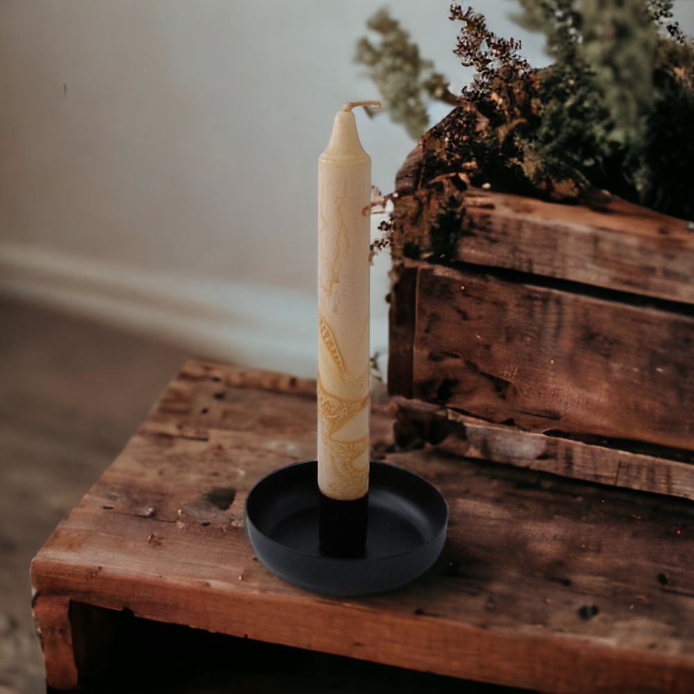 Metallinen yksinkertaisen kaunis Coast kynttilänjalka. Kaunis yksinään tai kokoa näitä ryhmään. Koko 9x2cm Väri musta