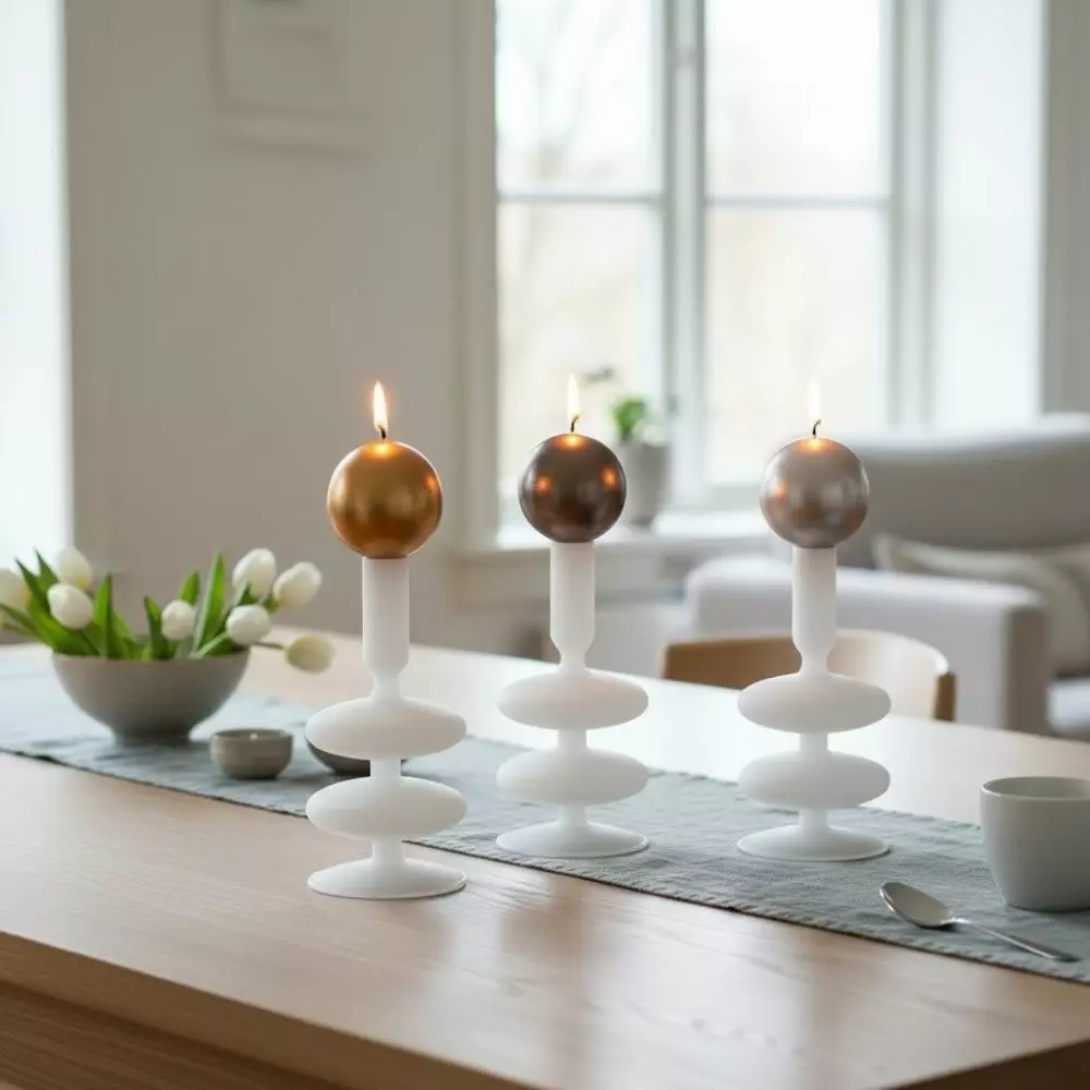 Herkkä ja upea lasinen kynttilänjalka, jota voit käyttää myös maljakkona yhdelle kevyelle oksalle.