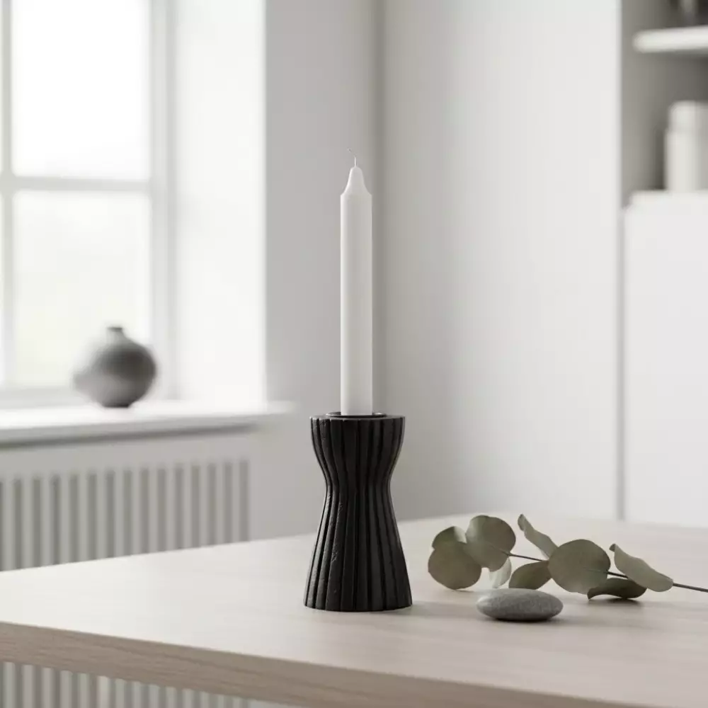 Kaksivärisiä kuunukynttilöitä neljän kynttilän pakkauksessa.
