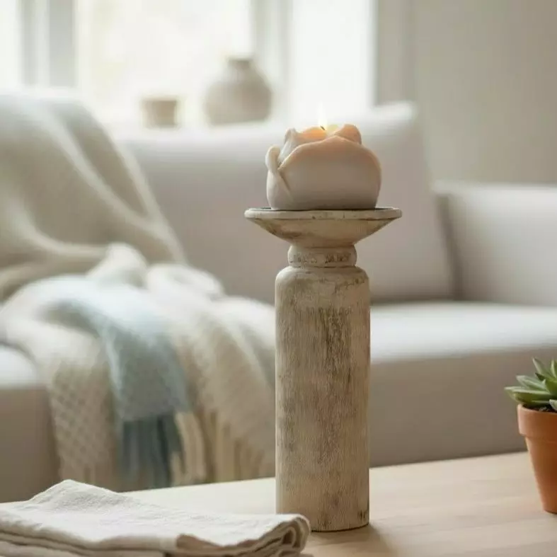 Kaunis puinen kynttilänjalka sopii sekä kruunulle että pöytäkynttilälle. Kynttilän alla on metallinen osa, joten jalka on turvallinen käyttää. pieni: Koko: korkeus 11 cm, halkaisija 10 cm... Lue lisää