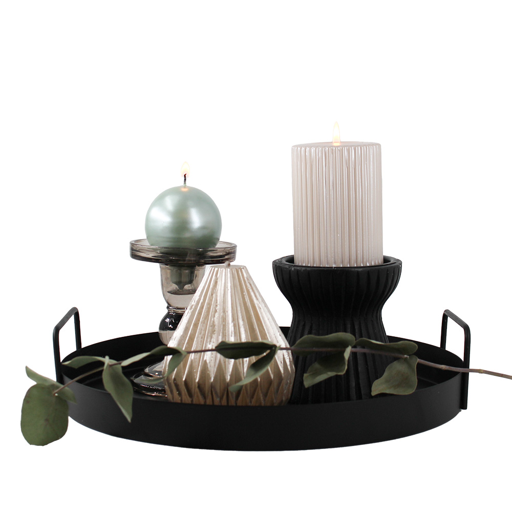 Upea helmiäishohtoinen pallokynttilä. Pallokynttilät myydään kahden kynttilän paketissa.