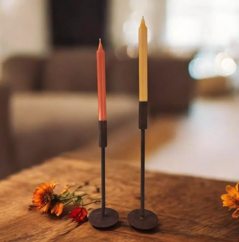 Uniikki ruosteinen kynttilänjalka tuo kotiisi rustiikkista charmia ja lämpöä.