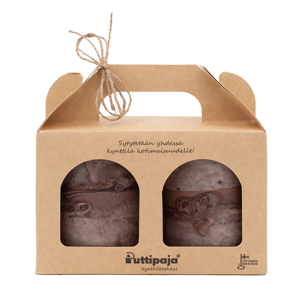 Lahjapakkaus sisältää kaksi tervantuoksuista kynttilää