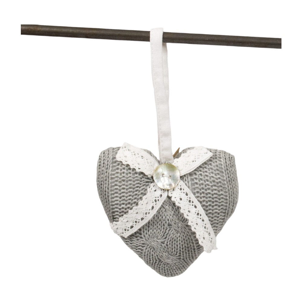 Hennon harmaan sävyinen pehmeä sydänkoriste.