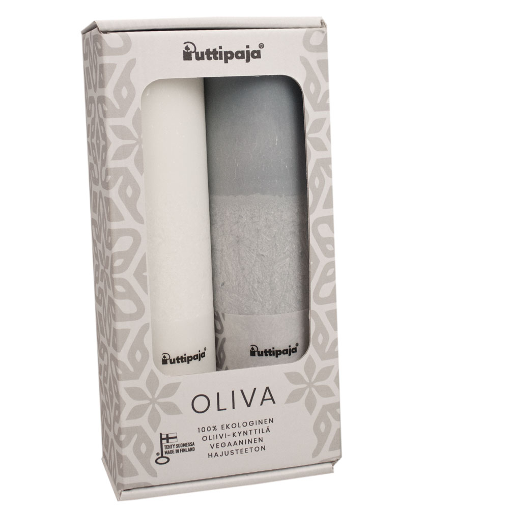 Ihana joululahja tai muu vieminen mihin vuoden aikaan tahanasa. Pakkaus sisältää kaksi Oliva-kynttilää.