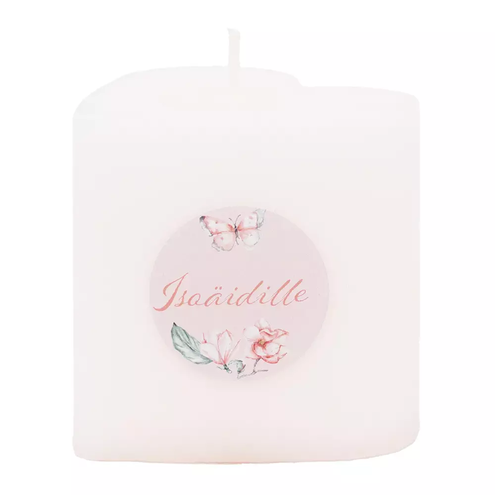 Sydänkynttilä "isoäidille"-tarralla, kerma