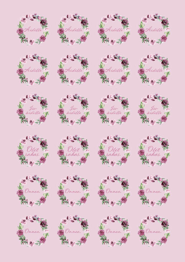 Tarra-arkissa on 24 tarraa erilaisilla teksteillä keväisiin ja kesäisiin onnenhetkiin. Vanhan roosan sävyisillä tarroilla somistat kätevästi niin lahjapaketit, kynttilät, kortit kuin kuoret.