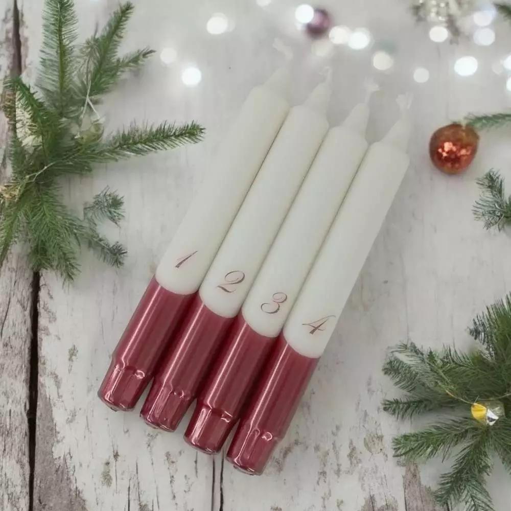 Dip dye Adventti -kruunukynttiläpakkaus, viini 4kpl/pkt
