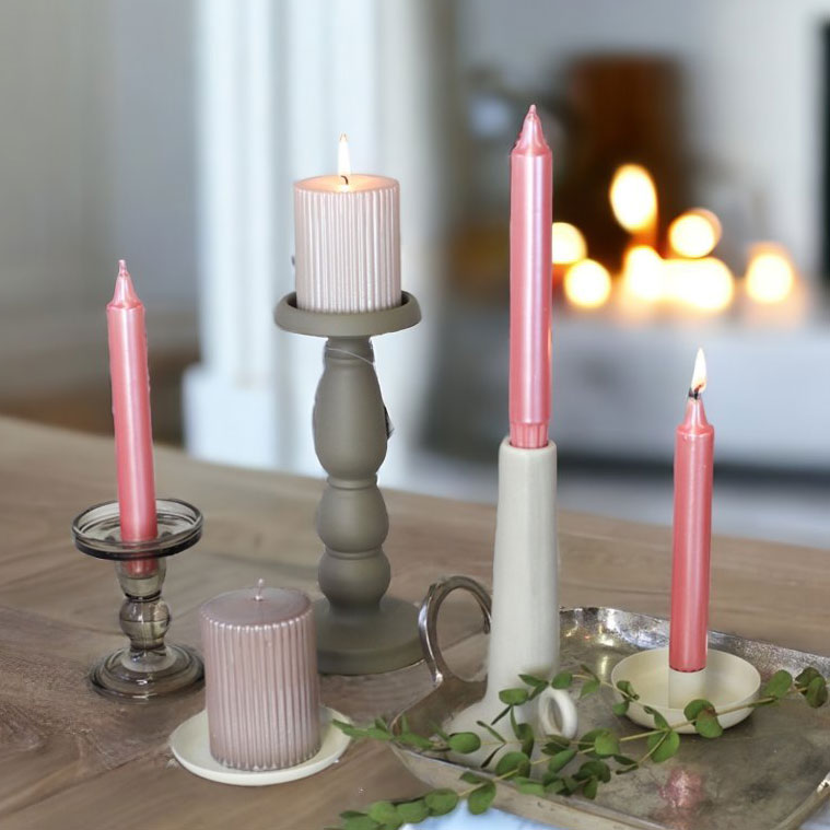 Paketillinen sointuvien sävyjen pallokynttilöitä.