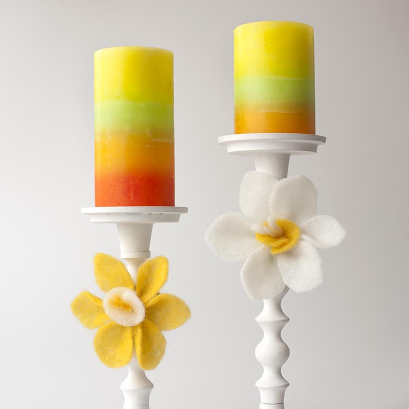 Pirteä huopanarsissi on kevään ensimerkki. Kiepauta nauhallinen narsissi koristeeksi sisustukseen tai esimerkiksi lautasliinarenkaaksi kattauksen kaunistukseksi.