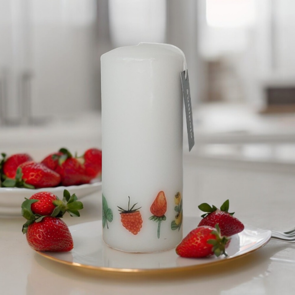 Kesäkynttilä "Mansikkapaikka", 6x14 cm