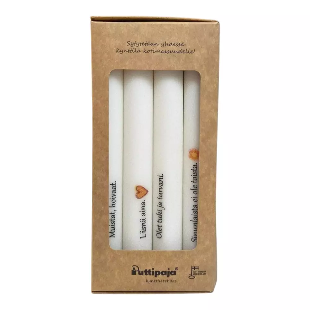 Kerman värisen jalallisen pallokynttilän paloaika on 12 tuntia. Pallokynttilät myydään kahden kynttilän paketissa.