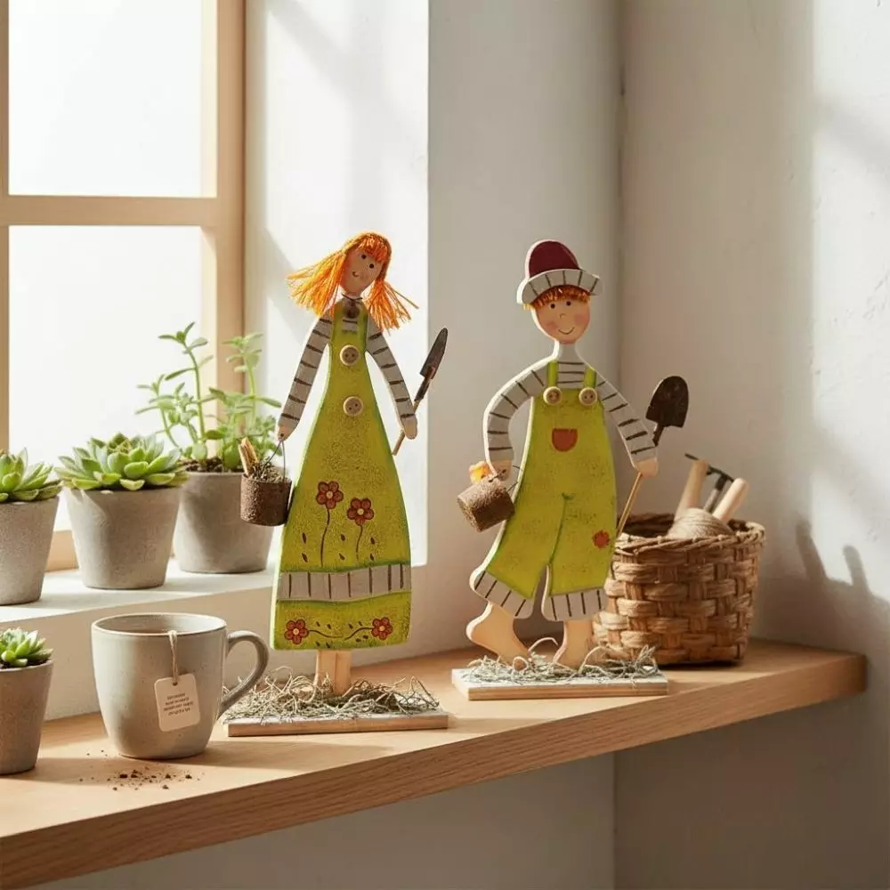 Puiset 22 cm korkeat puutarhurikoristeet somistavat kivasti kodin tai mökin kesätunnelmaan.