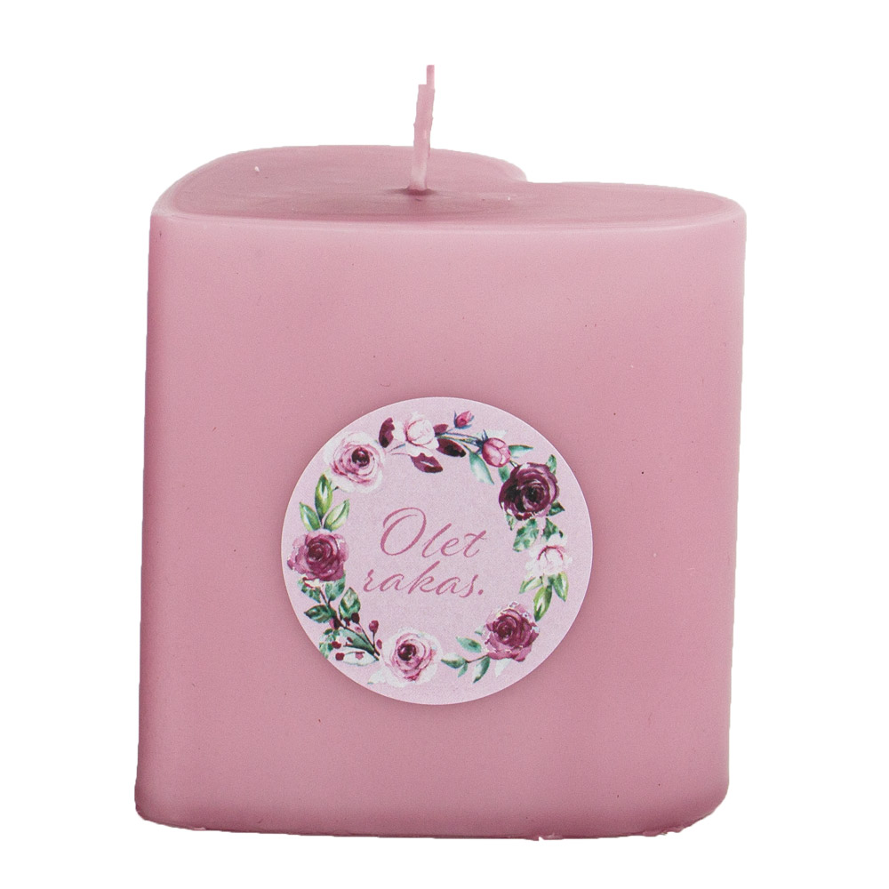 Herttainen vaaleanpunainen ruusukynttilä, jonka halkasija on 7 cm