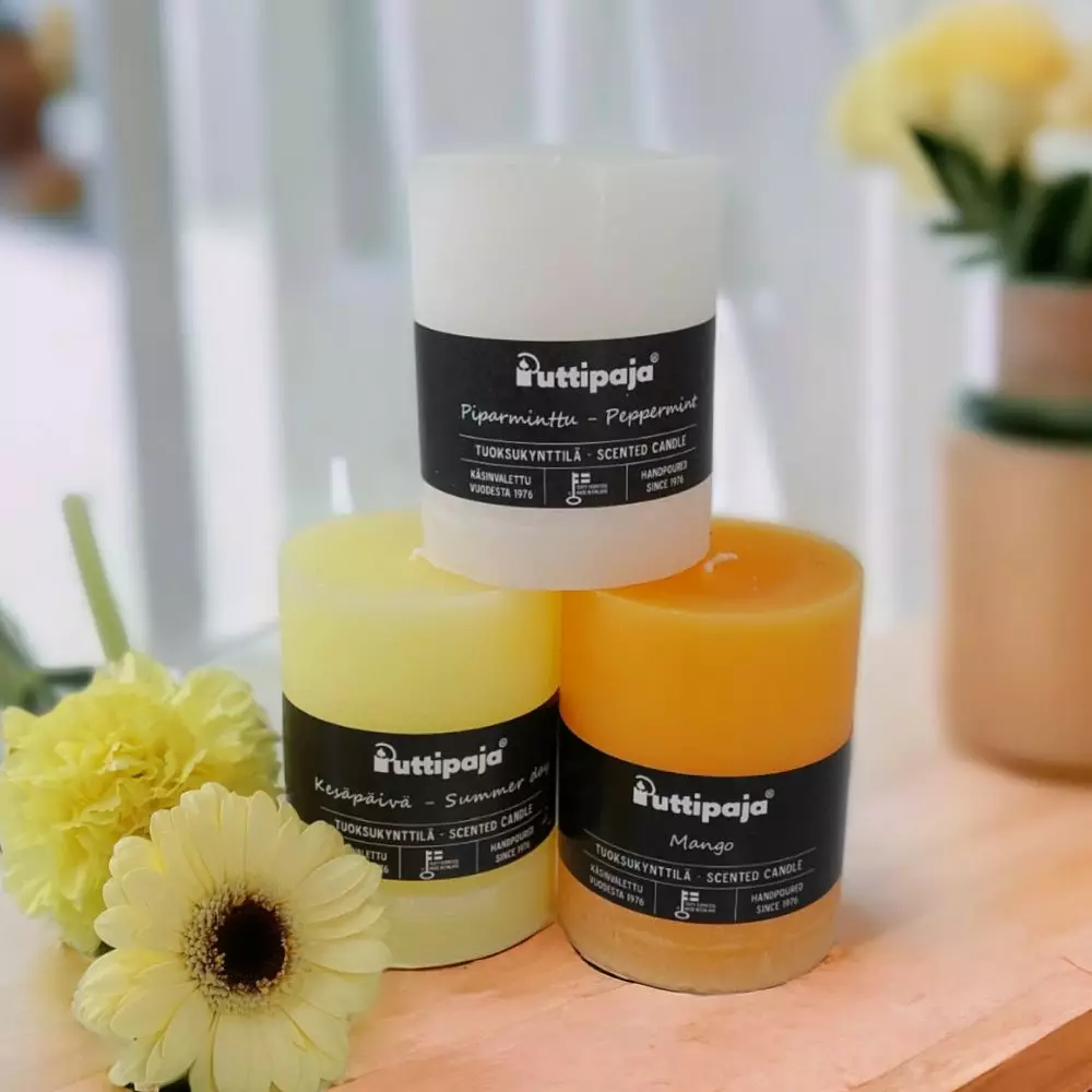 Paketin sisältämät tuoksukynttilät ovat kesäpäivä, mango, piparminttu.