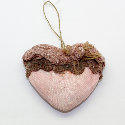 Hempeän vaaleanpunainen kanvas-sydän koko: 9x9cm Narun pituus 9cm