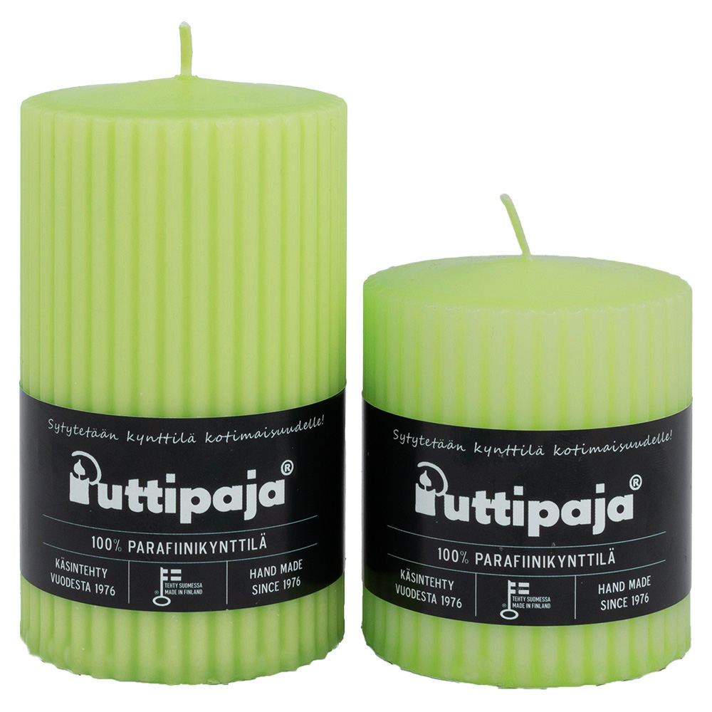 Pintavärjätty vekkikynttilä Väri: Limen vihreä Koostumus: 100 % parafiinia Kynttilän paloaika: 7x8 cm~35 h 7x12 cm~55 h