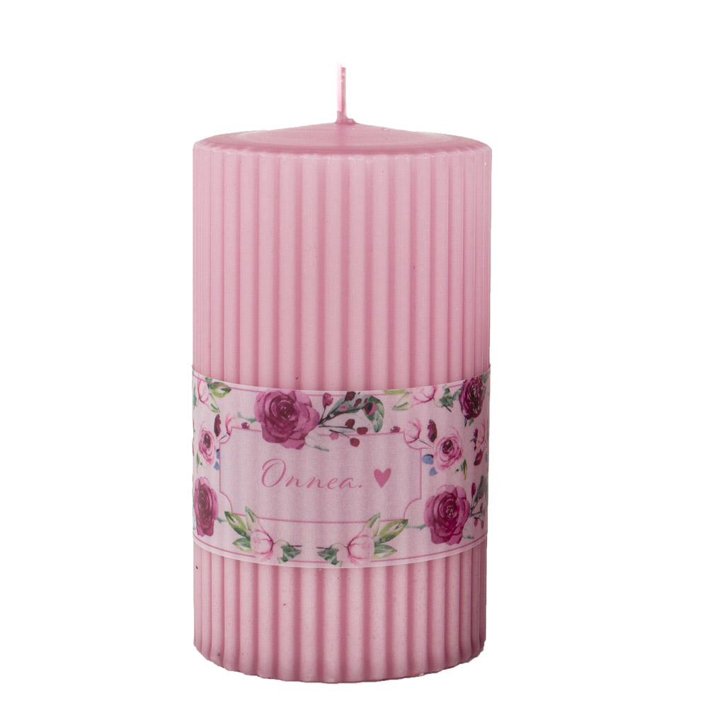 Vanhan roosan värinen pintavärjätty sydänkynttilä 8 cm. Kynttilän paloaika 40 tuntia.