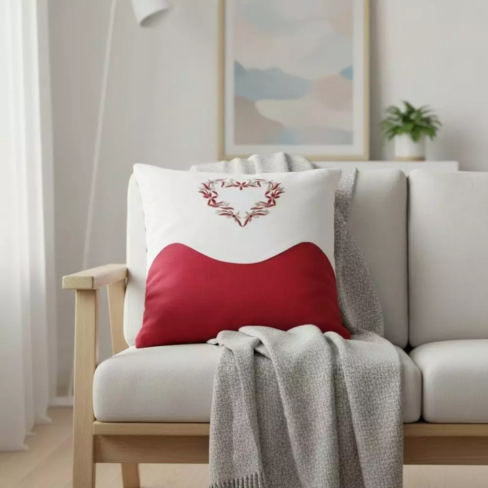 Kauniilla ornamentti koristeella kruunattu Hertta-tyynynpäällinen soveltuu erinomaisesti jouluiseen sisustukseen. Tyynynpäällinen on takaosasta kokonaan punainen. Sisustyyny on helppo asettaa tyynynpäällisen sisään, sillä tyynyn alareunassa on piiloon ommeltu vetoketju.
