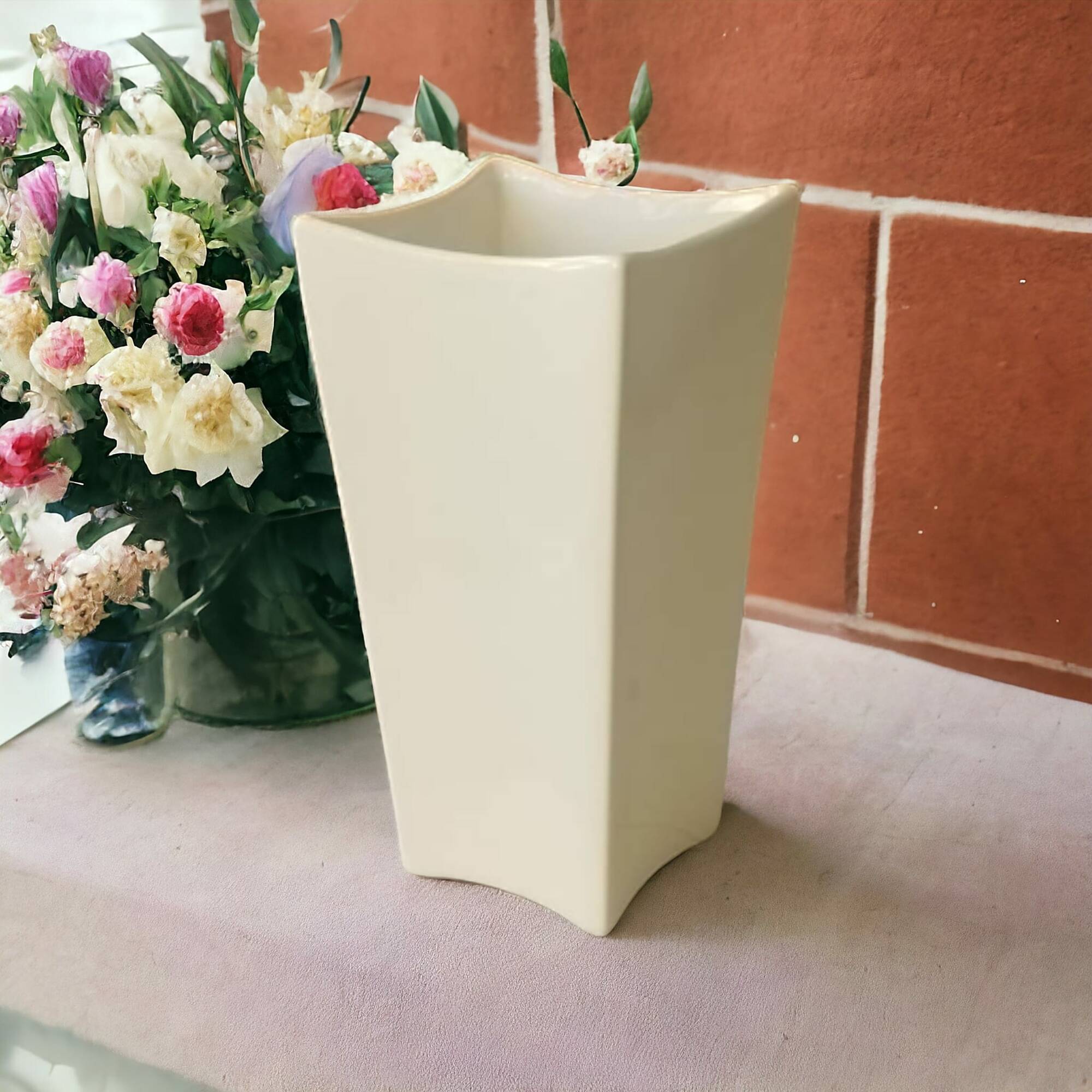 Luonnonvalkoinen, tyylikäs keramiikkamaljakko. Soveltuu monenlaisten kukka-asetelmien sommitteluun.