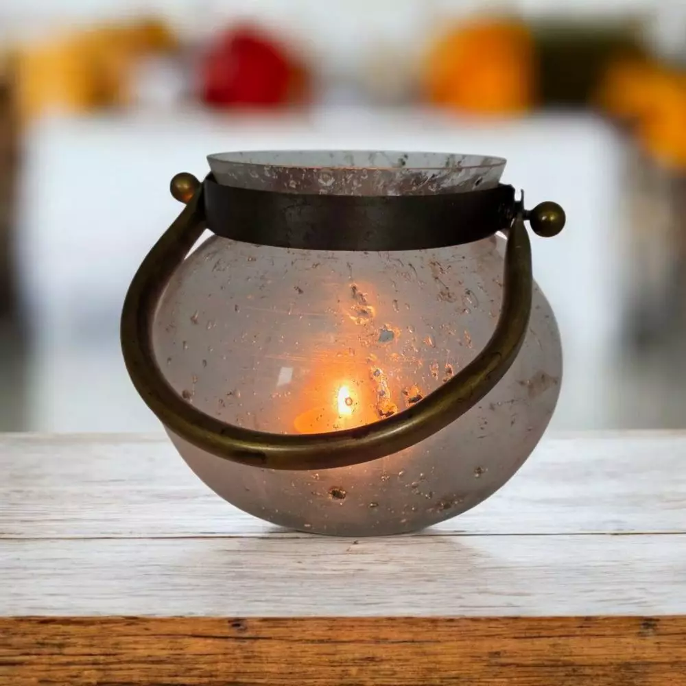 Rusehtava pieni lyhty metallisella kantokahvalla.