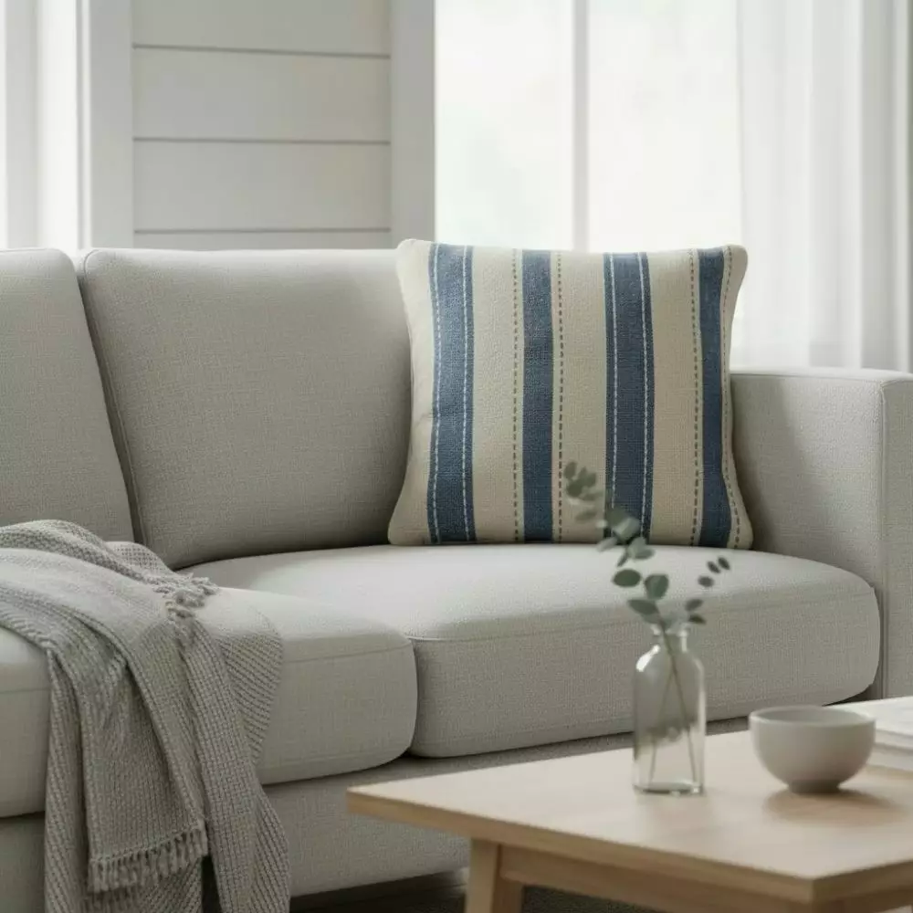 Raidallinen Riihiraita-tyynynpäällinen on kooltaan 35x55 cm